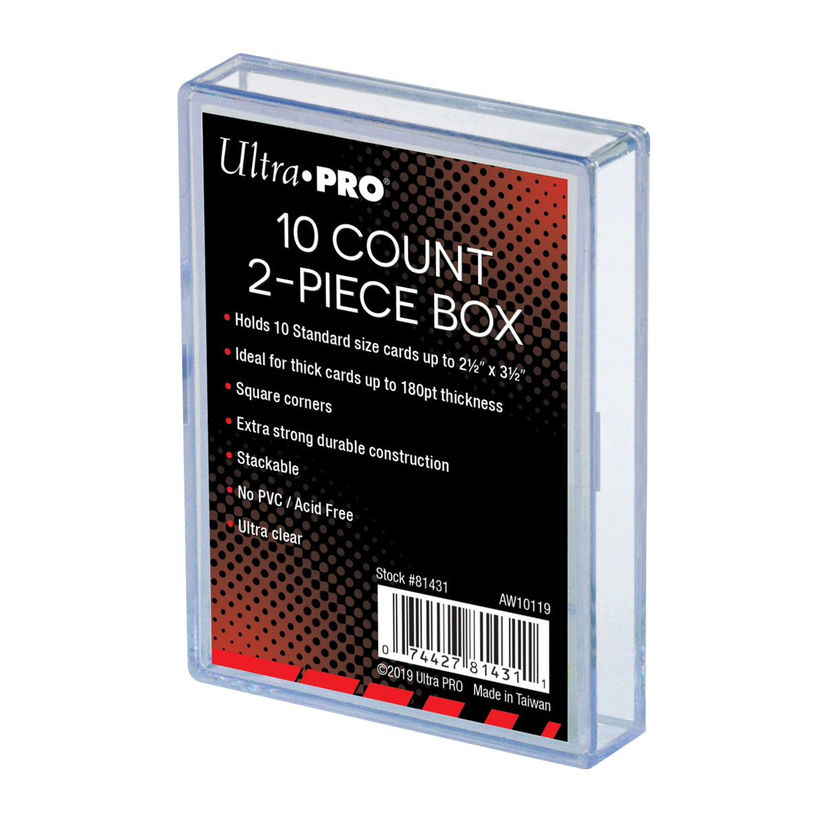 超透明で頑丈なボックスは、ぴったりフィットする半気密式蓋を採用。2ピース構造で最大10枚の標準サイズカード(最大2-1/2インチ×3-1/2インチ)を収納可能。角が四角いためカードの角を傷つけにくい設計。積み重ね可能で整理・保管が容易。