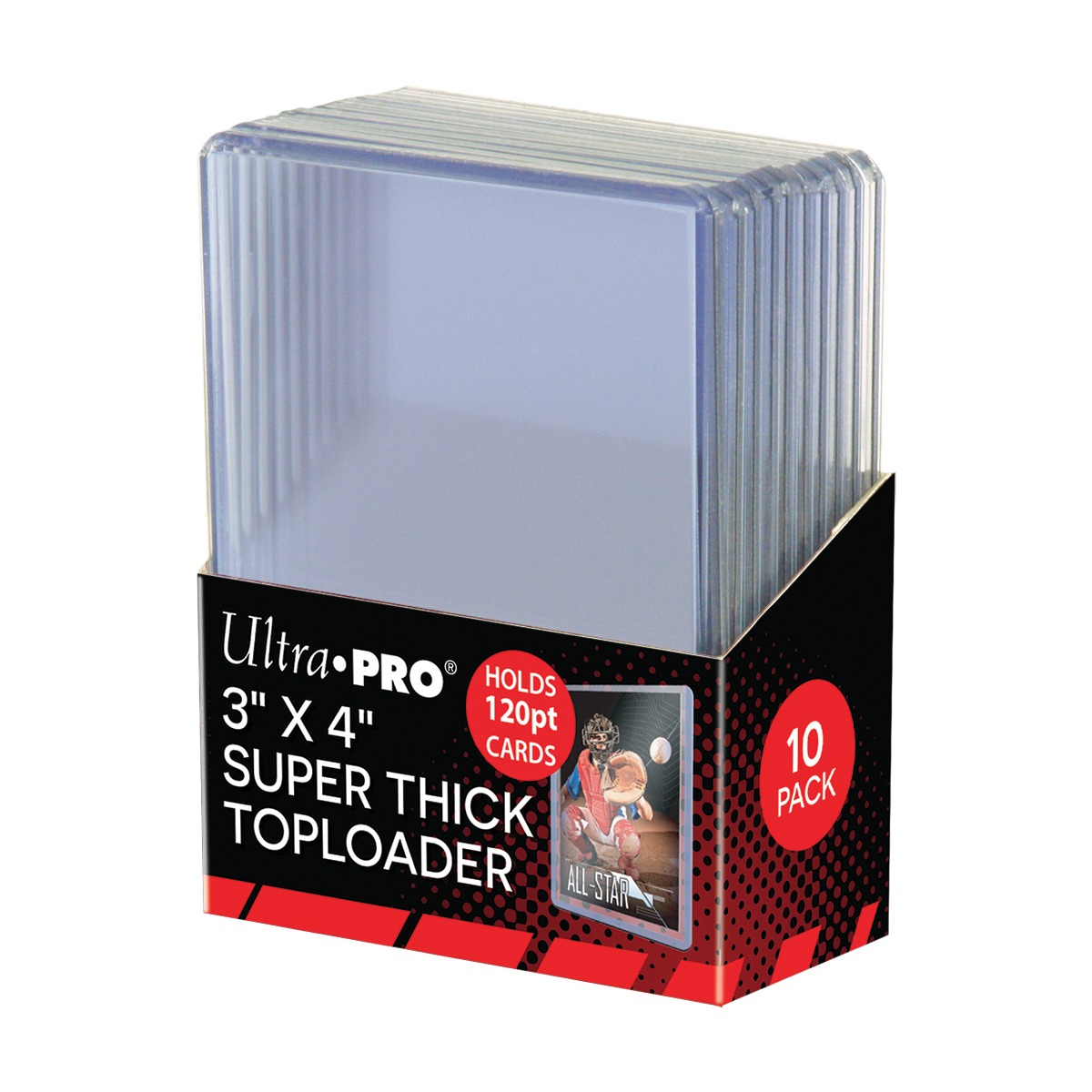 貴重なトレーディングカードを保護するウルトラプロの超透明3インチ×4インチ「超厚型」トップローダー。最大120pt厚の標準サイズカードに対応。硬質PVCプラスチック製ホルダーがカードを包み込み、清潔に保ちながら損傷を防ぎます。各パックに10枚入り。