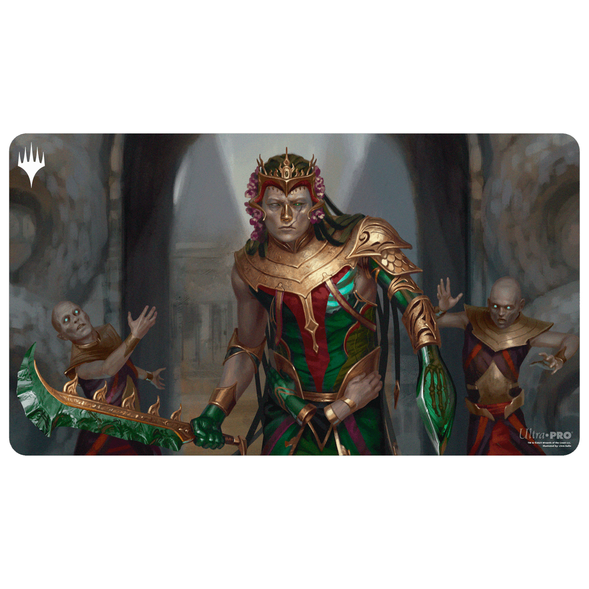 Playmats feature popular Tarkir Dragonstorm Kotis, Sibsig Champion (Sultai Arisen Commander Deck) Playmat for Magic: The Gathering artwork and enhance your gameplay experience! Each playmat is made with a soft fabric top to reduce damage to cards, and the non-slip rubber backing keeps the playmat from shifting during use. With dimensions of approximately 24 in. x 13.5 in., a playmat also makes an excellent oversize mousepad for home or office.