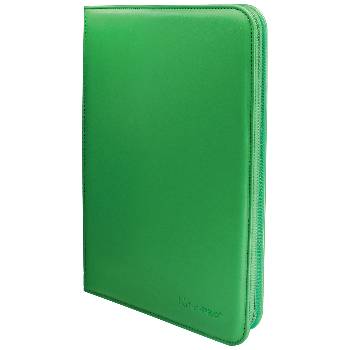 Vivid 9 ポケット ジッパー付き PRO バインダーは、お気に入りのトレーディング カードを収集して整理するために設計されています。各バインダーには、統一されたジッパー開閉部とプルタブを及びパッド入りのレザーレットカバーが付いています。バインダーを開けると、横入れポケットに標準トレーディング カード用サイズの 9 ポケット ページが 20 枚入っており、デッキ プロテクター スリーブに最大 360 枚のカードを保管できます。ページには低摩擦の黒色の裏地が付いており、前面と背面のポケットが分離され、カードにクラシックなフレームの外観が与えられます。すべての PRO-Binder は酸を含まない非 PVC 素材で作られており、カードを確実に保護し、保存します。 9 ポケットジッパー付き PRO バインダーは、青、緑、紫、赤、水色、黄色、ティール、黒の 8 色からお選びいただけます。.